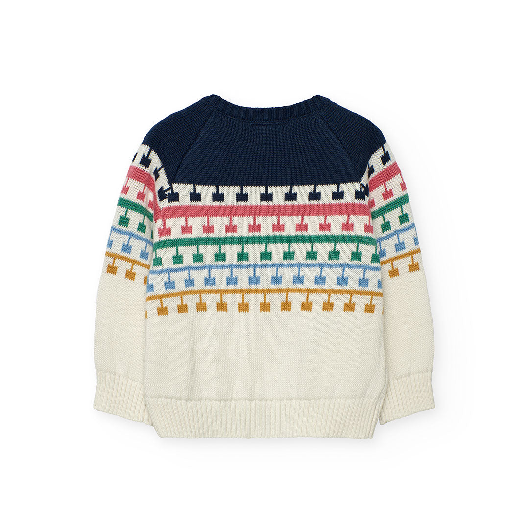 Jersey punto para niña en color blanco con diseño geométrico, perfecto para las temporadas de otoño e invierno, brindando calidez y comodidad. Hecho de un material suave, garantiza que estén bien abrigados.